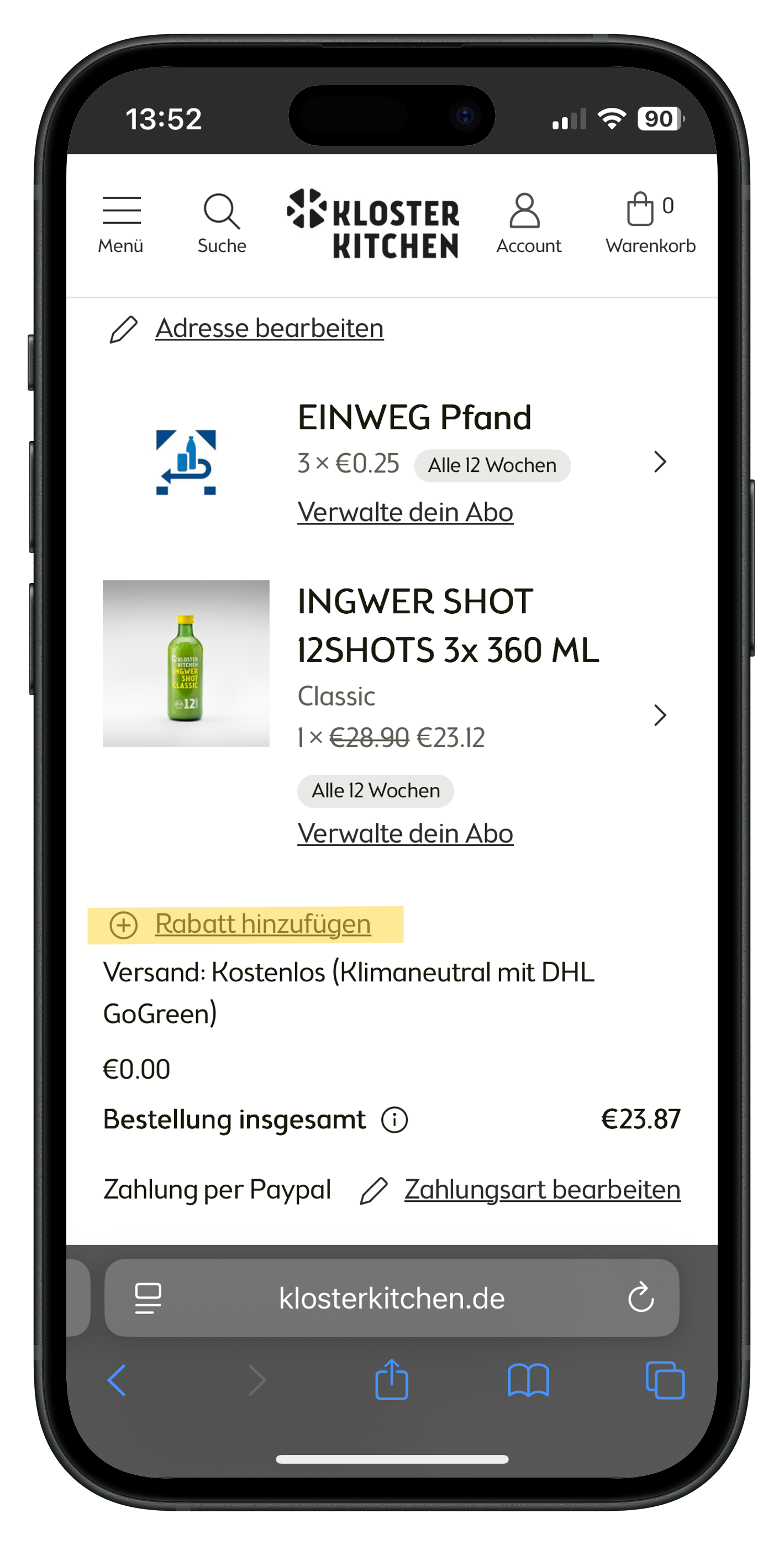 Dazu einfach Gutschein aussuchen und Code kopieren, und bei Abo verwalten einfügen. Das war's!