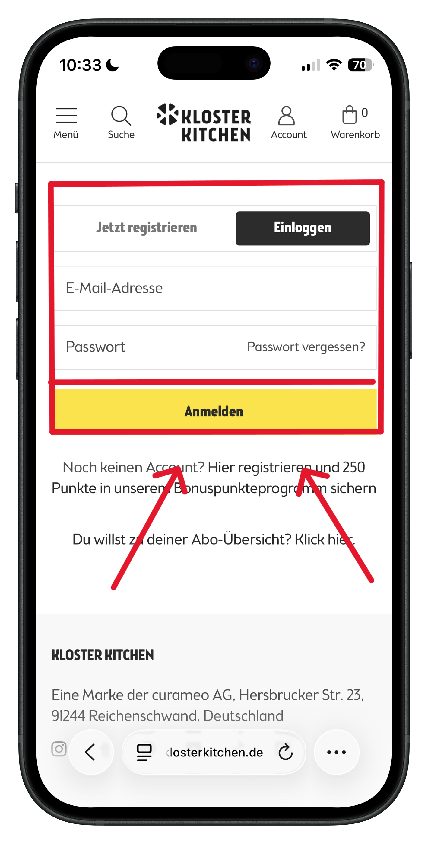 Zuerst meldest du dich wie gewohnt in deinem Account an.