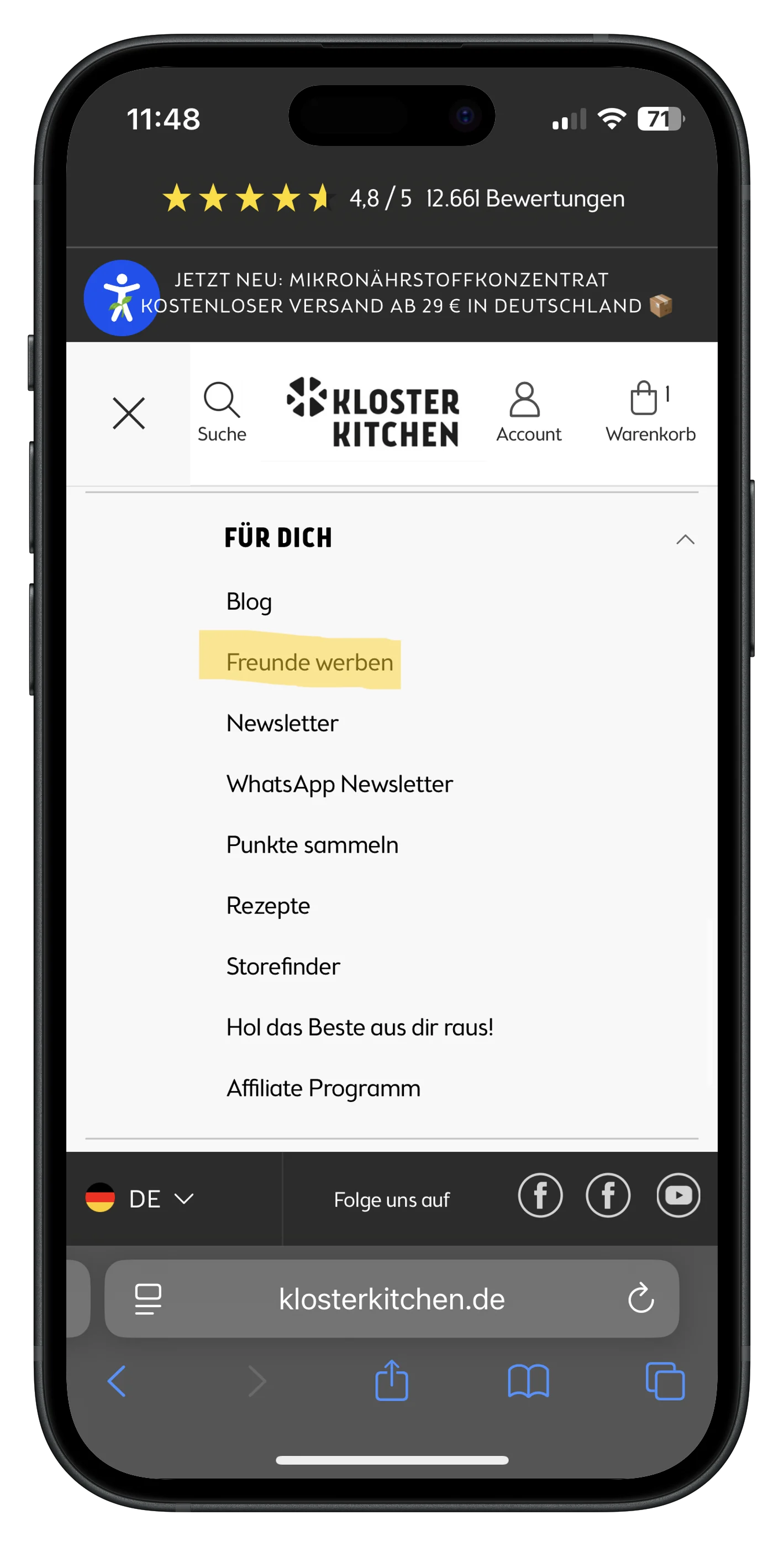 Um einem Freund unsere leckeren Produkte näher zu bringen, musst du dich zuerst bei unserem Freunde werben anmelden. Dazu musst du einfach den Freunde werben Seite aufrufen.