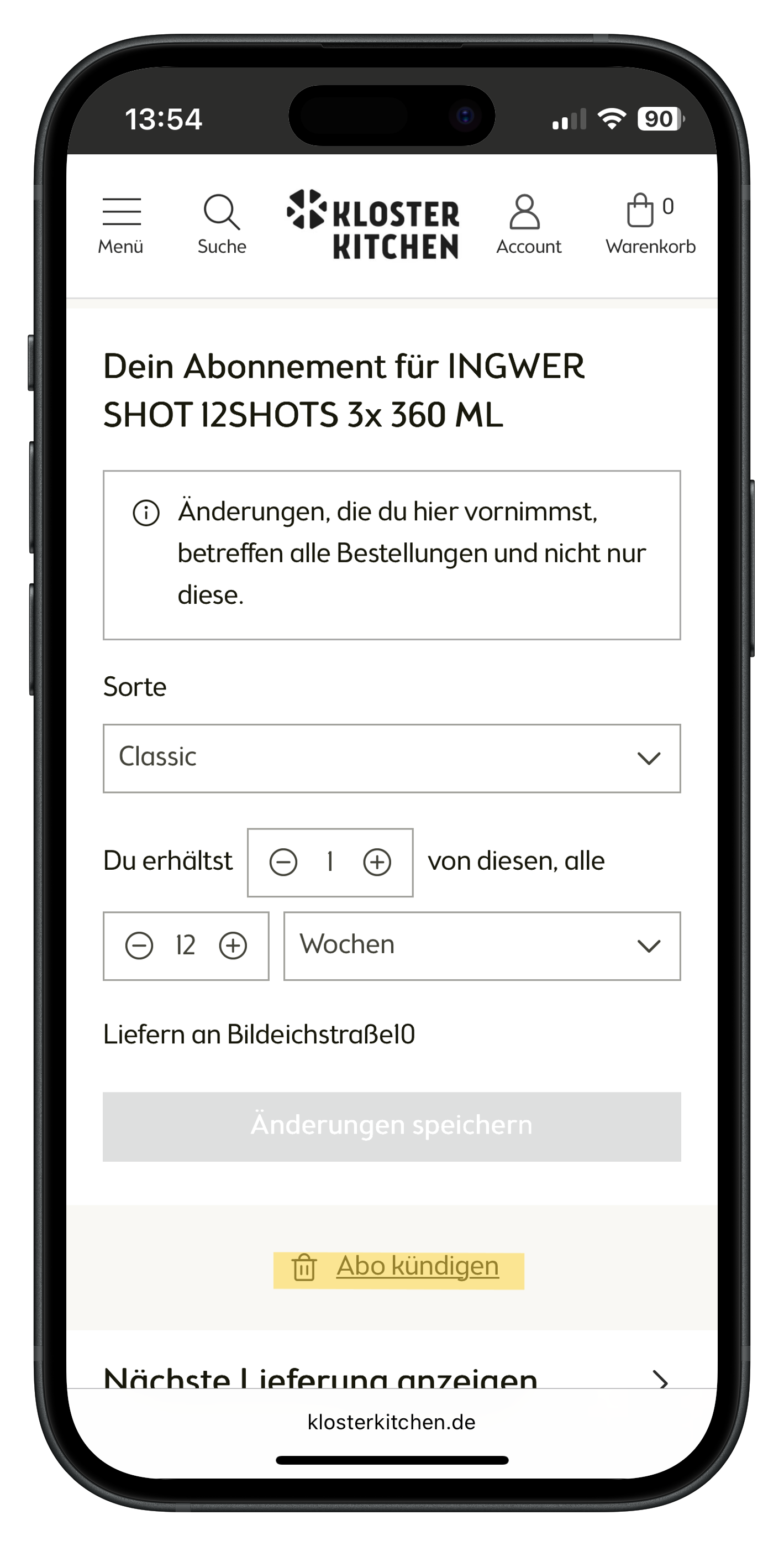 Wenn du dein Abo beenden möchtest, kündige es online in deinem Account.