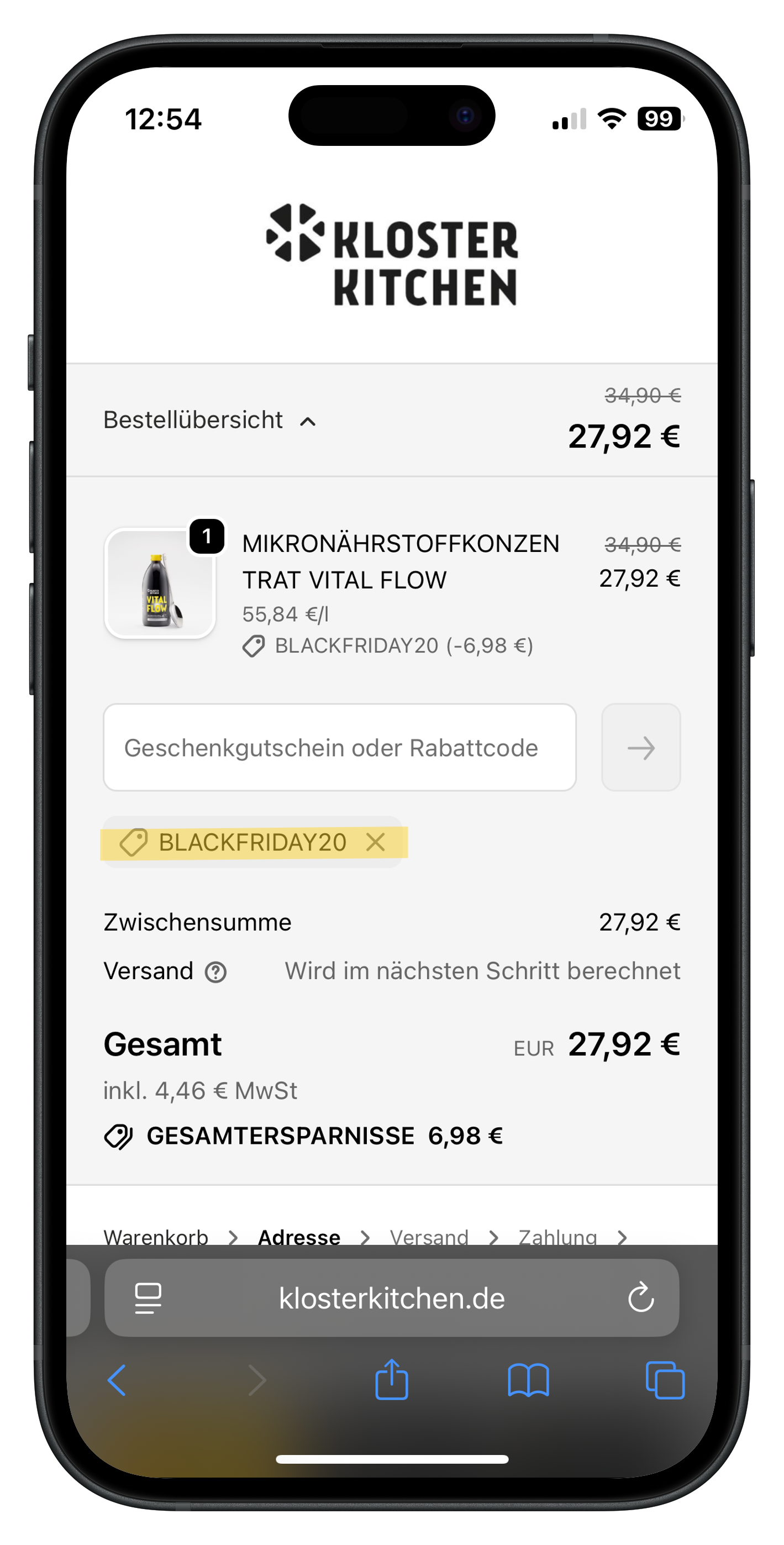 During checkout, you can check whether your voucher has already been applied: